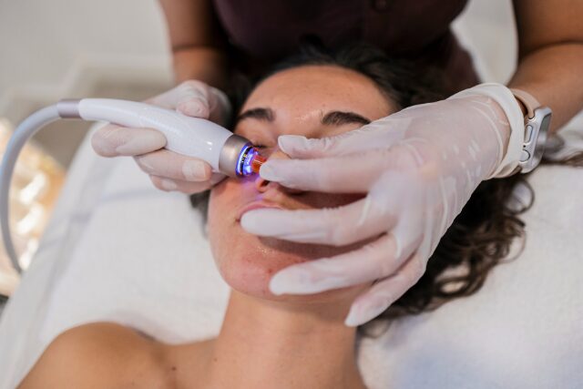 温熱機器でお顔の老廃物排出を促し、真皮層のハリをUPしていきます。